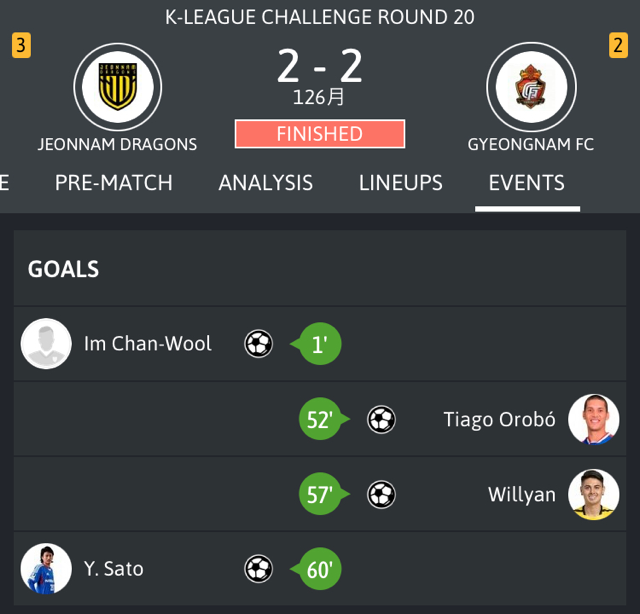 韓国 Division2 第20節